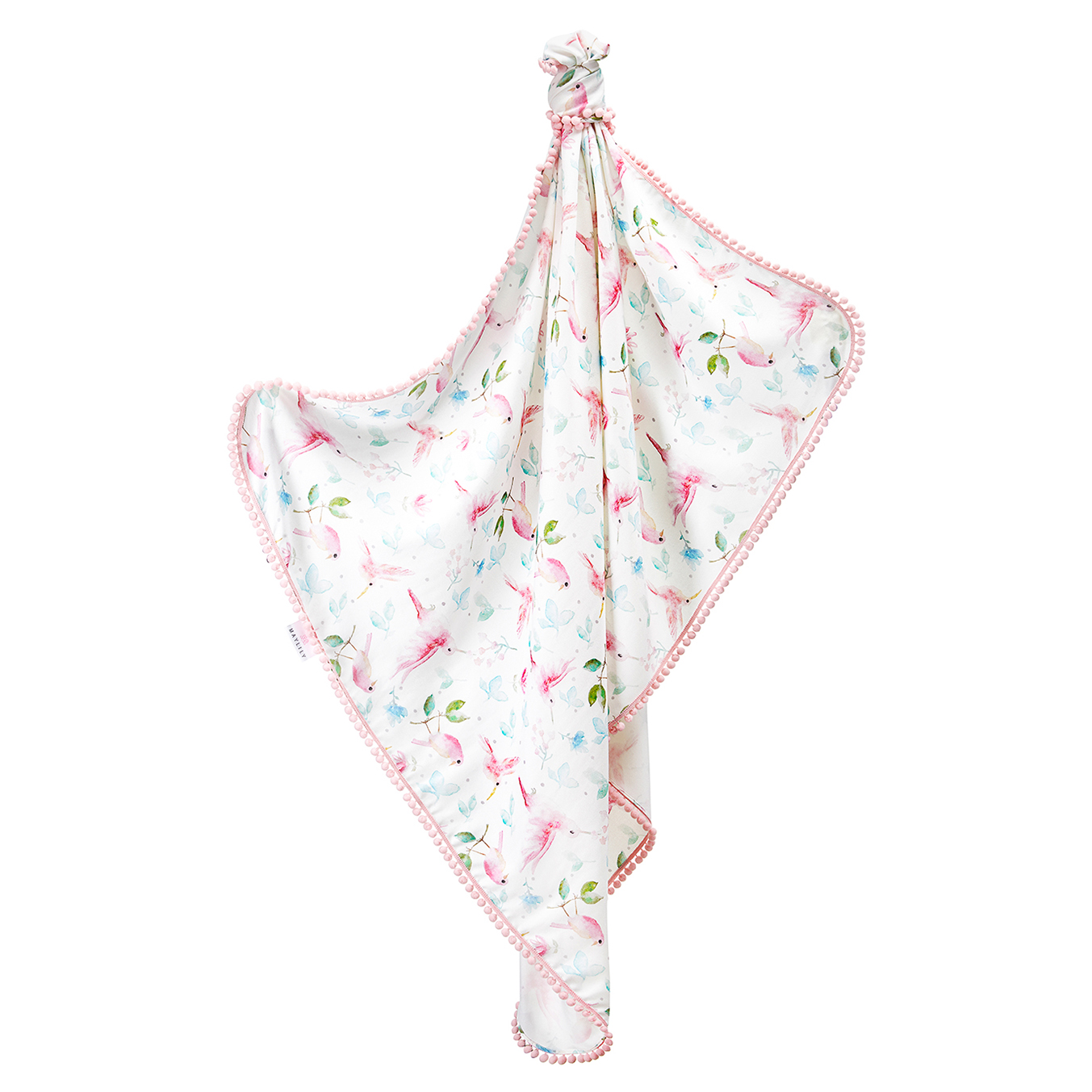 Subtle and light. Chic MAYLILY graphic design and cute little pom poms. A delicate cover blanket with a beautiful look.