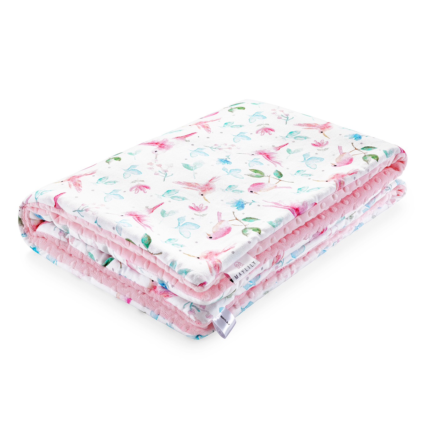 Κουβέρτα μπαμπού/minky XL Paradise birds – Blush