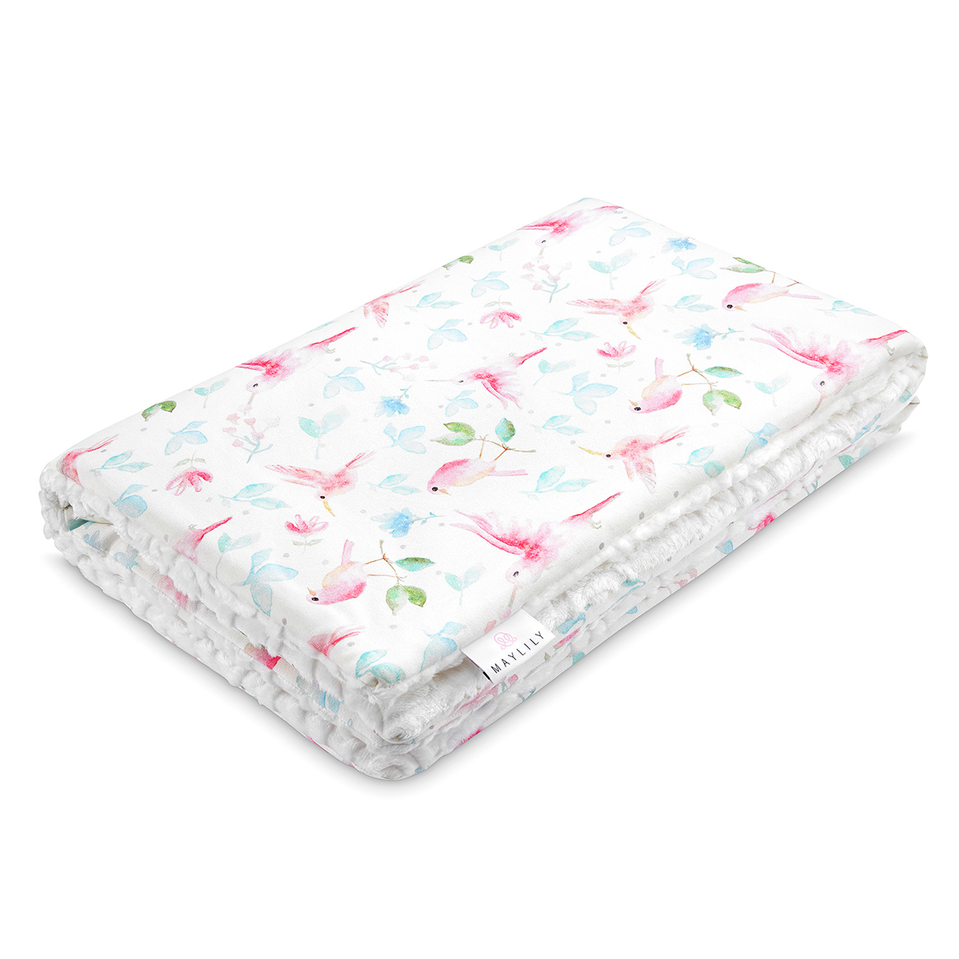 Κουβέρτα μπαμπού/minky XL Paradise birds – White
